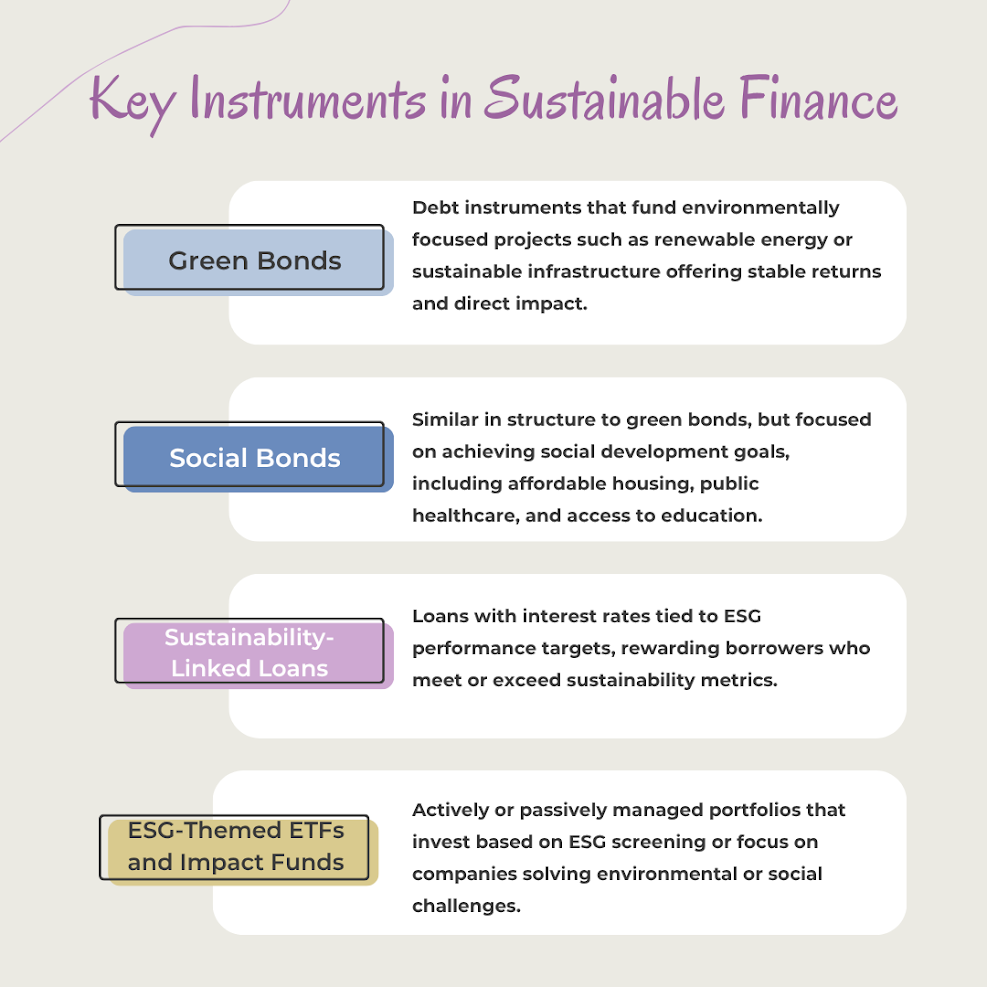 What financial instruments are available for investors looking to support ESG and sustainability goals?